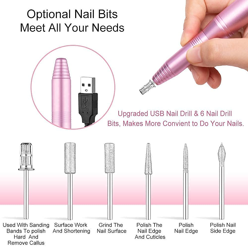 ערכת מקדחי ציפורניים מקצועית - מעוצבת עם 6 סיביות מתכת סטנדרטיות אופציונליות,